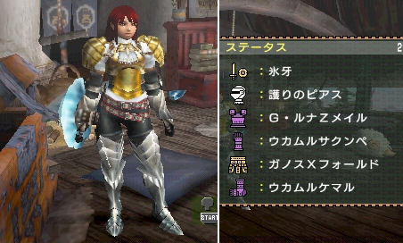 「早食い」を削ったわけですが・・・「剣術」「早食い」に加えて「特殊攻撃強化」「オートガード」も発動させようと思うと、ヤマツカミの素材から作るG級装備「夜叉・真」を一式揃えるぐらいしか選択肢が無いようなんですよね。だけどこの装備、性能は申し分ないんですが見た目が・・・ちょっと可愛くなかったんですよ。